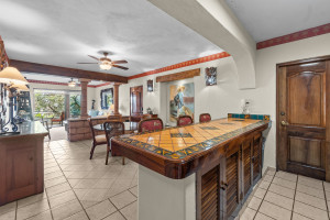 The kitchen 🍽️, adorned with classic Mexican tiles and featuring a spacious pantry, is ideal for those who love to cook and entertain. The open-concept living area flows seamlessly onto a generous terrace overlooking lush gardens and the complex’s swimming pool 🏊—a perfect setting to relax or enjoy outdoor living 🌞.