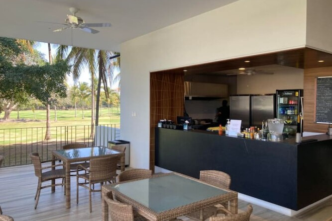 One of the highlights of this corner condo is the expansive wrap-around terrace, offering tranquil views of the golf course and pool area—perfect for morning coffee or a sunset cocktail.