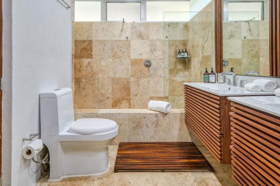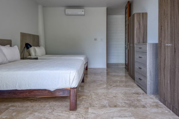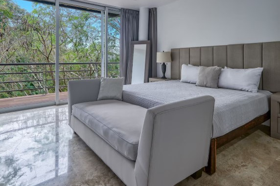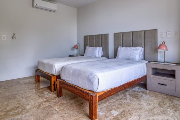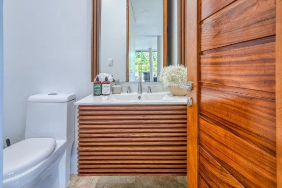 En el primer nivel hay tres dormitorios con entrada independiente: uno con baño privado y dos que comparten baño. Todas las habitaciones cuentan con balcón con sillas y mesa, caja fuerte, secadora, aire acondicionado, ventilador de techo y armario. La villa ofrece también una cocina moderna totalmente equipada, área de lavandería, sala con TV y cómodos sofás, Wi-Fi de alta velocidad y una hermosa área verde junto a la piscina. Los huéspedes tienen acceso completo a las dos piscinas, al hogar, al patio delantero y trasero, a los senderos para caminar dentro de la comunidad y al solárium, asegurando una estancia de confort, privacidad y conexión con la naturaleza.