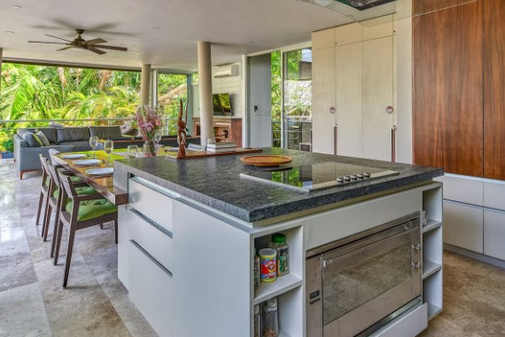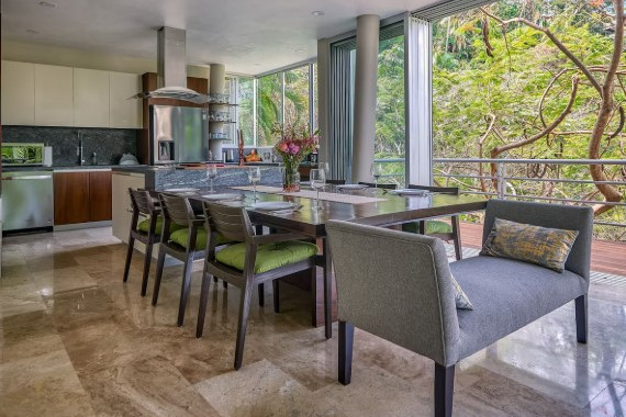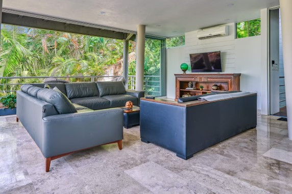 Paradise Amapas una espectacular villa de 5,000 pies cuadrados que ofrece un refugio de lujo rodeado de naturaleza, donde el canto de los pájaros, la verdadera selva y las vistas panorámicas al océano Pacífico y a la cascada crean una experiencia única.