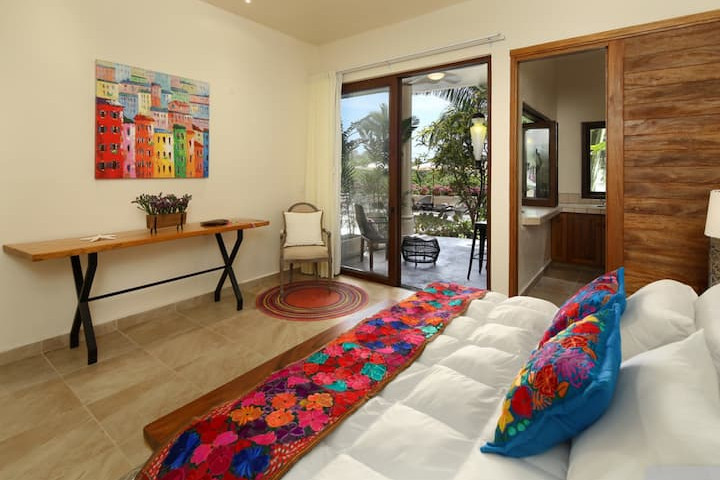 The lower levels offer five one-bedroom casitas, each with a king-size bed, private bath, and kitchenette.